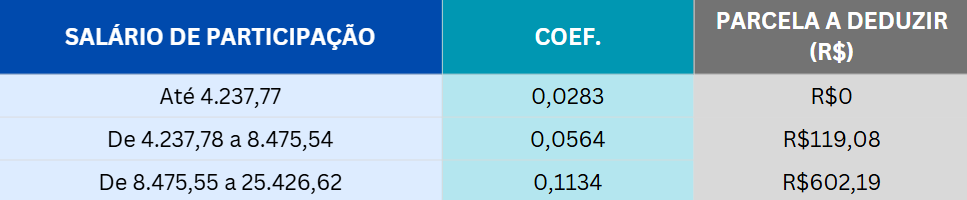 Contribuição = (Salário de Participação X COEF) – Parcela a Deduzir